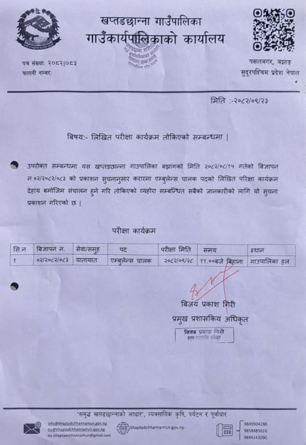 » लिखित परीक्षा कार्यक्रम तोकिएको सम्बन्धमा